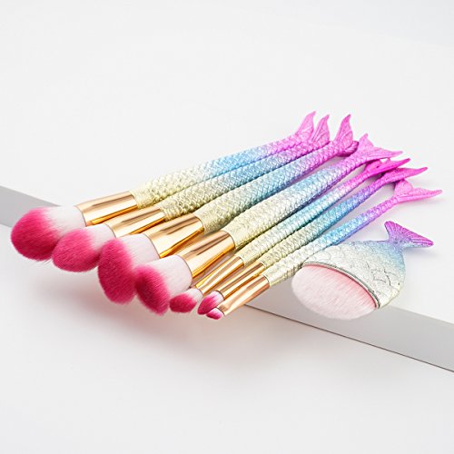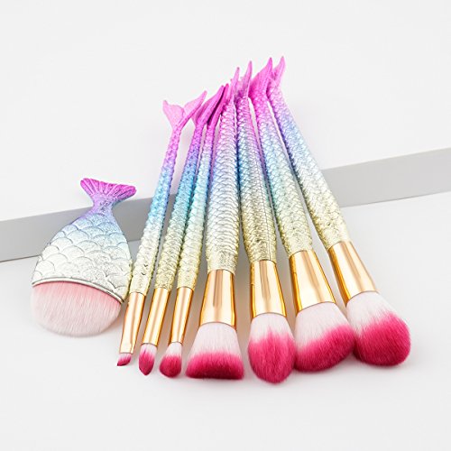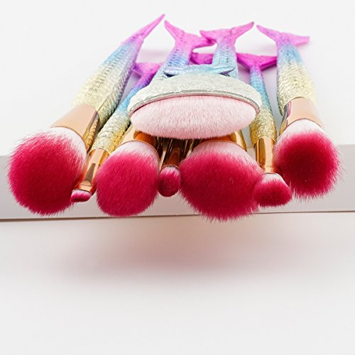 Makeup Brushes set Professional 8PCS 3D Mermaid Glitter Make up Brushes Set Eye shadow Powder Foundation Lip Contour Eyeliner Eyebrow Cosmetic Brush...