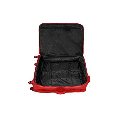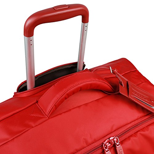 Product Description Fast turns. Sharp curves. Speed bumps. Go anywhere and in any direction with this spin-savvy case. Its four wheels turn 360?Four wheel spinner wheel system for maximum functionality?Vibrant Fashion colors?Durable and water resistant PVC reinforced Nylon?3 Year GuaranteeWeight: 6.6 lbs.Body Dimensions: 26.3" x 18.3" x 10.2"Overall Dimensions: 28.3" x 19.7" x 11.0" 0