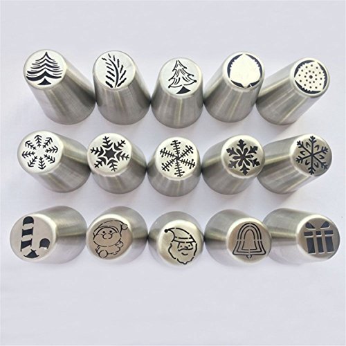 Katoot@ NEW Christmas Icing Nozzles Russian Stainless Steel Decorating Tips Molds Cupcake Pastry DIY Baking Tools Bakeware 15Pcs/Set