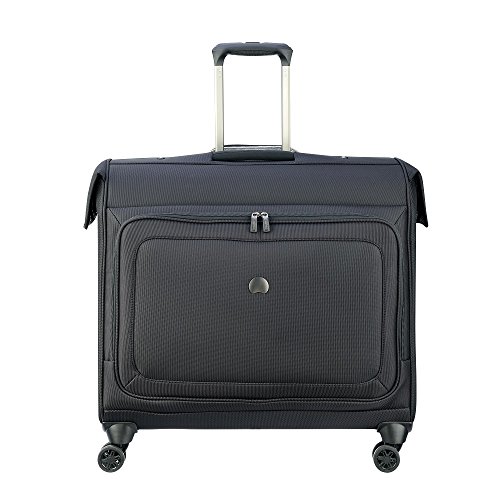 Studio : Delsey Luggage, Inc. Publisher : Delsey Luggage, Inc. Binding : Apparel Product Description Cruise Soft by Delsey Paris is made for the traveler who is looking for durable luggage with exceptional organization options. This spinner garment bag is fully featured to make your next trip a breeze. This check in sized bag is fully featured to easily transport clothing to minimize wrinkles. The exterior of this case includes a large zippered pocket for easy access to last minute items, a rubberized TPR non slip grip on the dual locking trolley handle, a recessed top carry handle, as well as an injected kick plate and reinforced corners for additional protection. The interior of this garment bag has a book opening design with a universal clamping system and provides multiple organization options including tie down straps, two zippered compartments for personal items, an extender panel with folding bar for longer garments like dresses or suits, two shoe pockets, two corner pockets for belts, ties, and small items, two hooks for use over a door or on a closet rod and a suiter clip. The Cruise Soft collection is protected by a Worldwide Limited 10 Year Warranty. 0