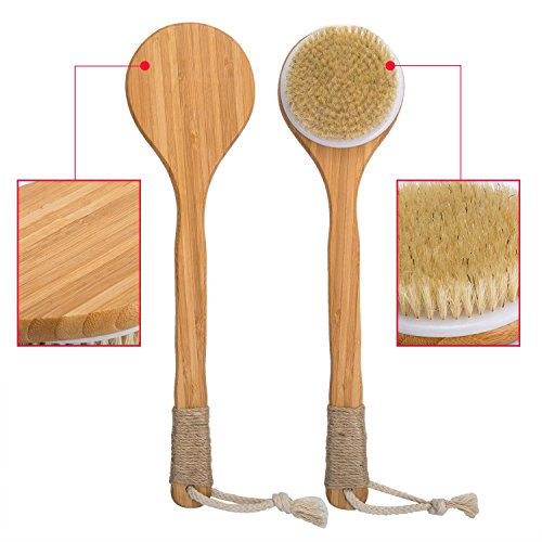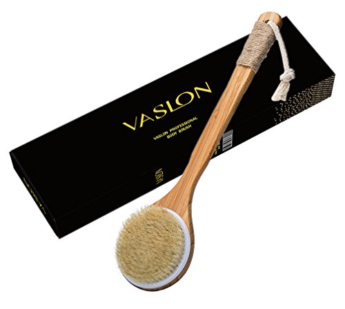 VASLON Bath Body Brush Boar Bristles Exfoliating Body Massager with Long Wooden Handle Back Brush Shower Brush