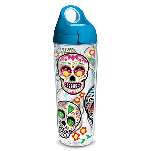 Tervis 1230808 Colorful Sugar Skull Wrap Water Bottle with Turquoise WB Lid, 24 oz, Clear