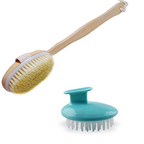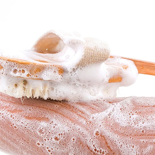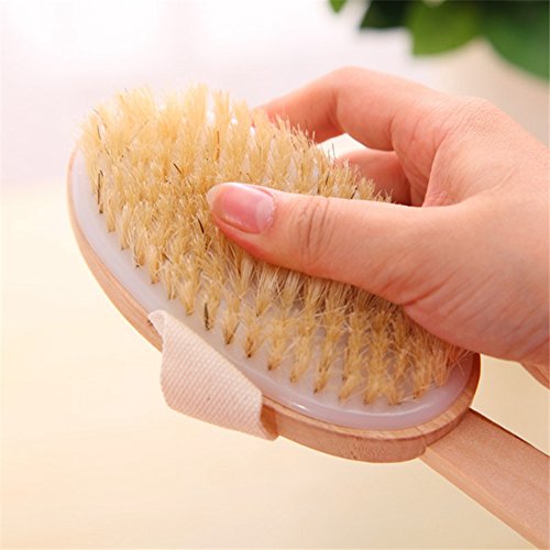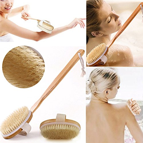 - [Body brush]: It is designed to help aid washing the hard to reach places as well as great for exfoliating and massaging your skin.with its long wooden handle you can reach your back and legs with ease.