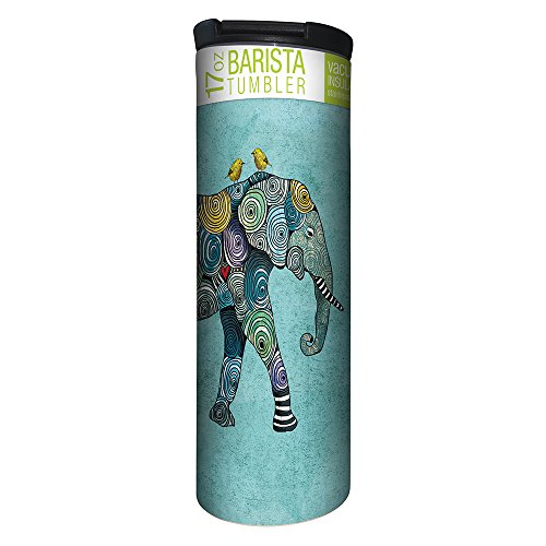 Tree-Free Greetings Elephant and Birds Blue Vacuum Insulated Travel Coffee Tumbler, 17 Ounce Stainless Steel Mug, Gift for Animal Lovers (BT21871)
