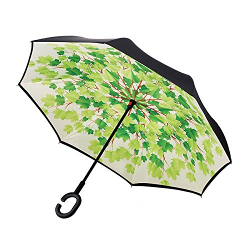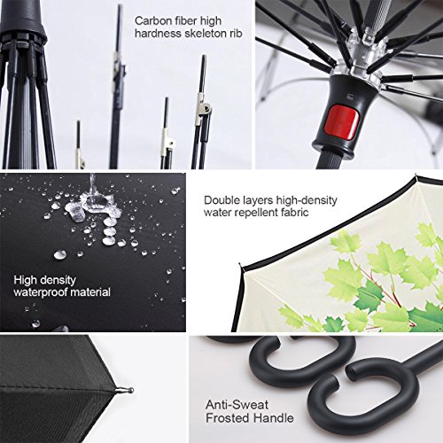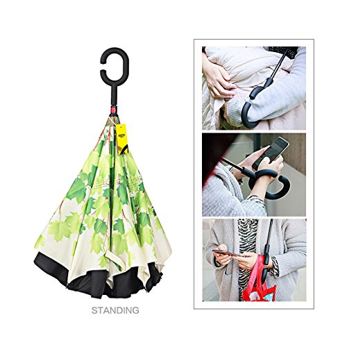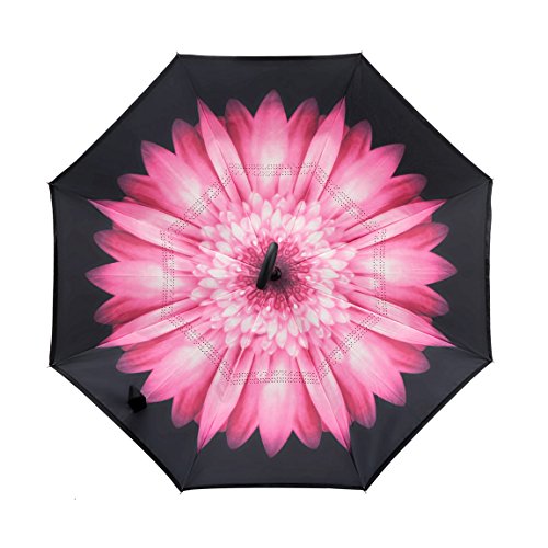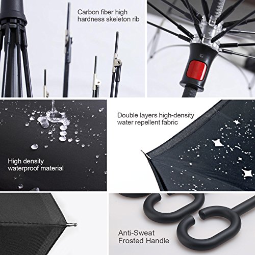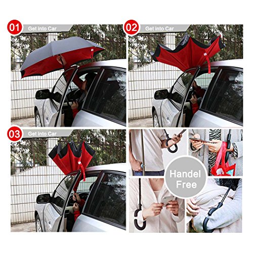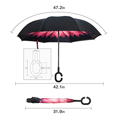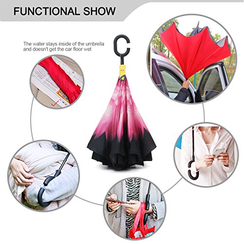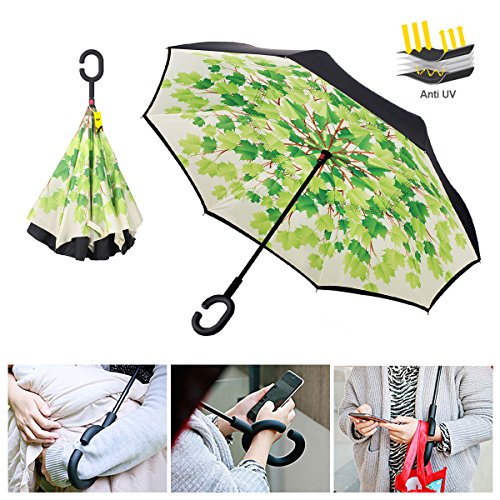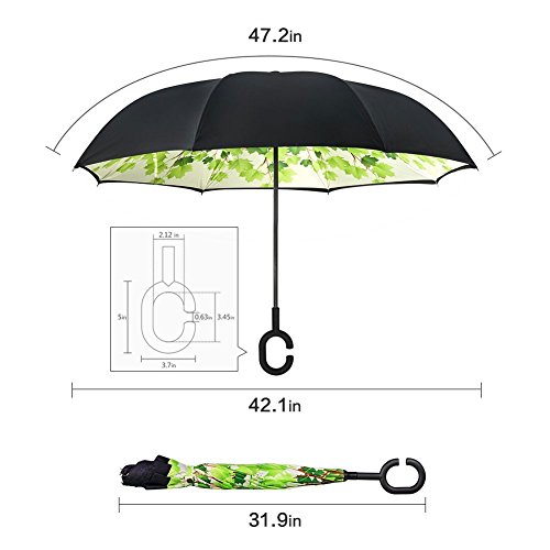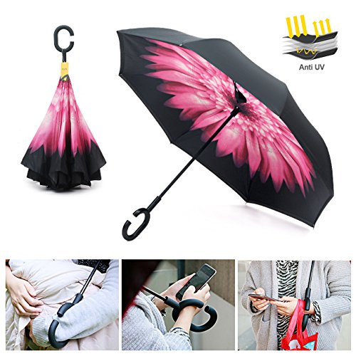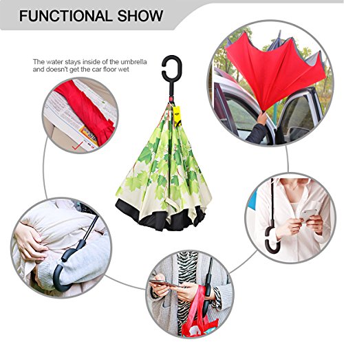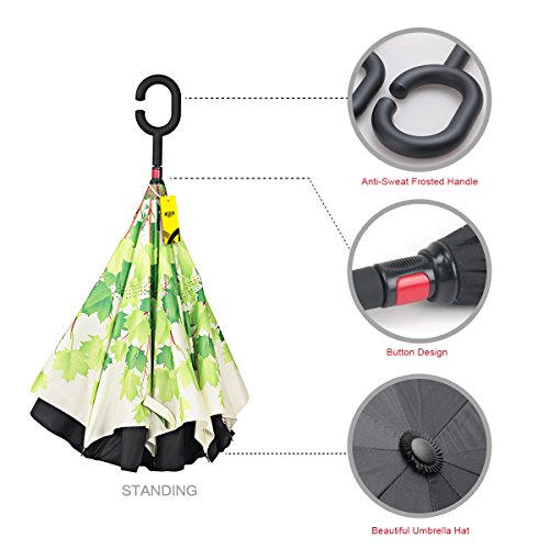 MOZON Double layer inverted umbrella * Unique design double layer inseide out umbrella, make it easy for you on raining day, won't wet your car, documents or others. * Advanced double layer ribs made the inverted umbrella more sturdy. * 23 in X 8 Panels is large enough for Many People .