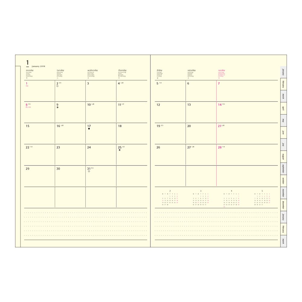 Monthly schedule is a simple block type calendar, so you can grasp the schedule of each week easily.