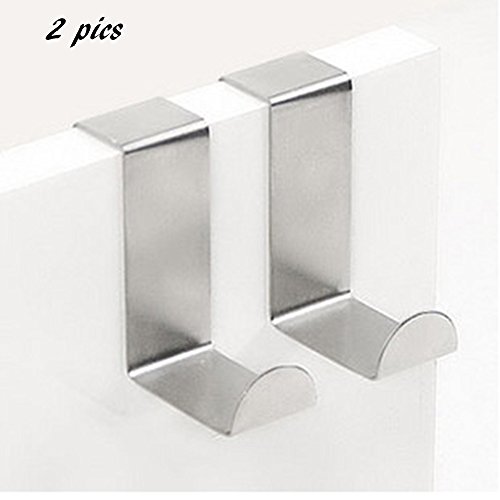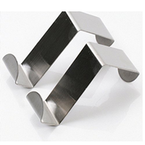 set of 2 Stainless Steel Over Door Hooks - Kitchen Cabinet Unit Draw Cloth Towel Bag Hanger ,Space Saving Organizer
