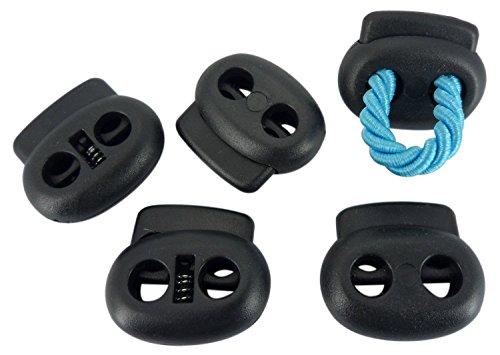 Flyshop Double Holes Black Oval Bean Cord Lock Stopper Fastener Slider Toggles End 10 Pcs