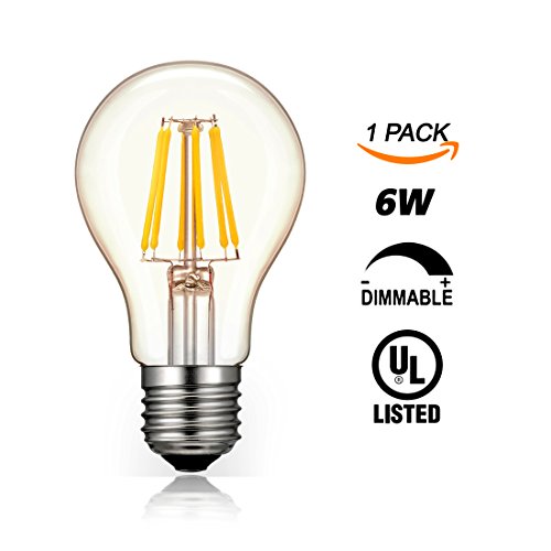O’Bright Dimmable LED Edison Light Bulb, 6W, Dimmable, UL Listed, A19 / E26 Base, 2200K (Warm White), LED Filament Bulb / Vintage LED Bulb, Amber Glass