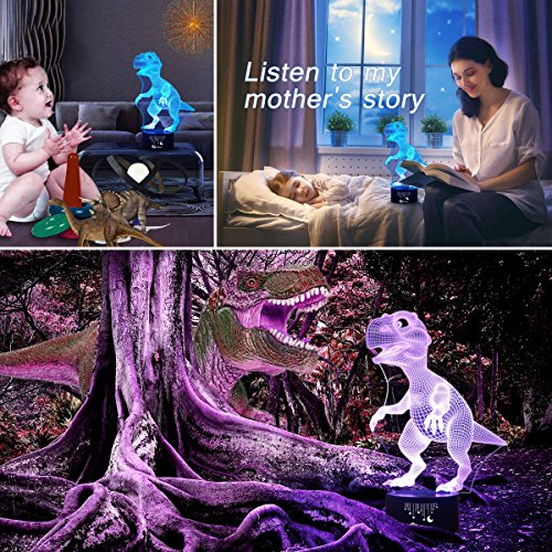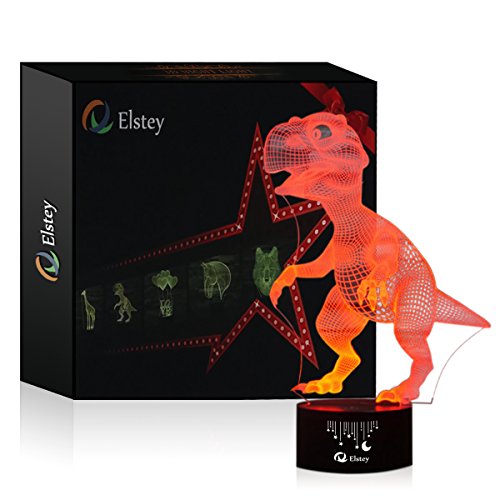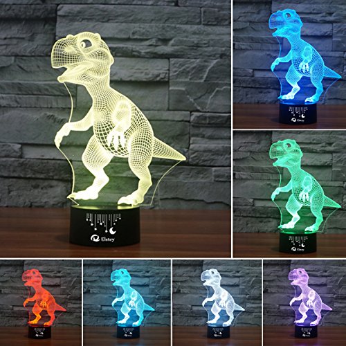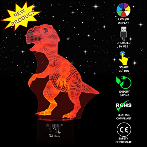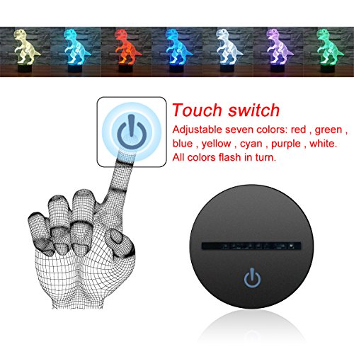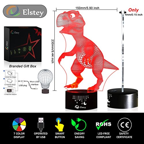 Dinosaur 3D Night Light Touch Table Desk Lamp, Elsley 7 Colors 3D Optical Illusion Lights with Acrylic Flat & ABS Base & USB Cabler for Christmas Gift
