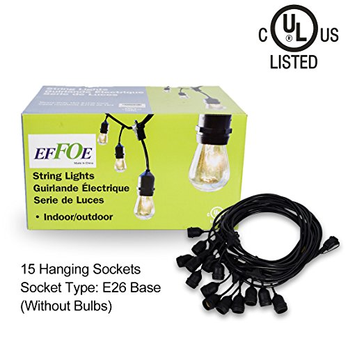 EFFOE 48Ft Waterproof Commercial String Lights Strand with 15 Hanging Sockets, Outdoor Dropped Sockets (Bulbs Not Included)