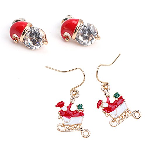 YOKIRIN Merry Xmas Series Gift Package Christmas Carriage Christmas Hat Ornament 2 Pairs Stud Earrings