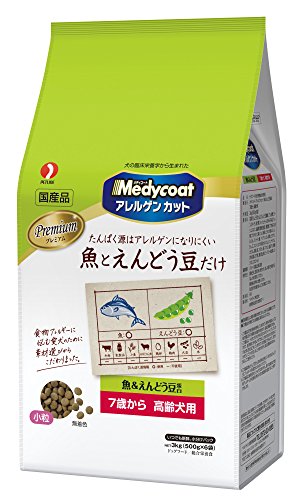 原材料:豆類(えんどう豆たん白、えんどう豆繊維)、でん粉類(コーンスターチ)、魚介類(フィッシュミール:DHA・EPA源、フィッシュエキス)、油脂類(動物性油脂)、種実類(ゴマ粉末)、糖類(フラクトオリゴ糖)、セレン酵母、ビタミン類(A、E、K3、B1、B2、パントテン酸、ナイアシン、B6、葉酸、ビオチン、B12、C、コリン)、ミネラル類(カルシウム、リン、ナトリウム、カリウム、塩素、鉄、コバルト、銅、マンガン、亜鉛アミノ酸複合体、亜鉛、ヨウ素)、酸化防止剤(ローズマリー抽出物、ミックストコフェロール)