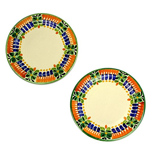 NOVICA Multicolor Backyard Barbeque Ceramic Dessert Plates, 'Acapulco' (pair)