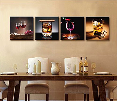 We focus on offering nice procuts at reasonable prices.This is a nice set canvas prints wall art with 4 piece wine relevant subjects: wine, cigar, ice, grape fruit . This set canvas arts are really very cute for your home decoration, especaily very good for kitchen and dinning room wall decor. Pay less to make up your room, bring happiness to your life!