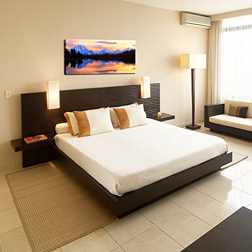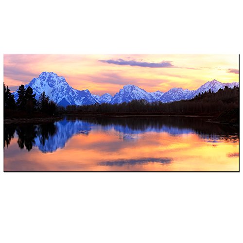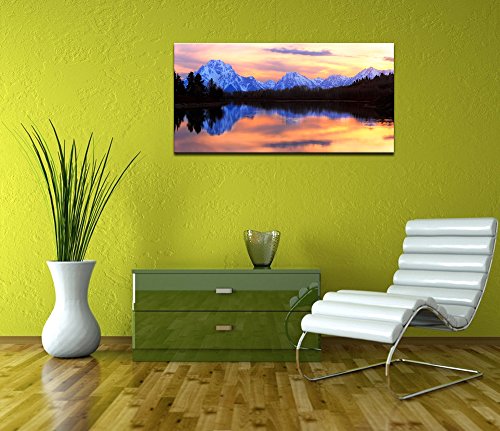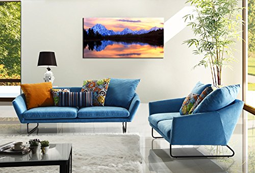 -. Title : Live Art Decor - Grand Teton National Park Landscape Canvas Wall Art,The Tetons Reflecting in The Snake River at Oxbow Bend Canvas P.R.Int,Home and Living Room Decor,Wyoming Scenery Wall Art -24"x 48"