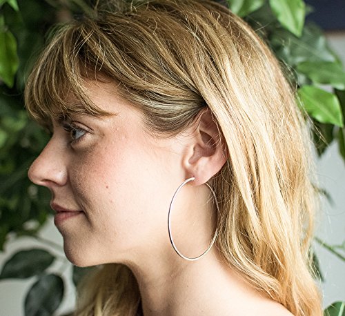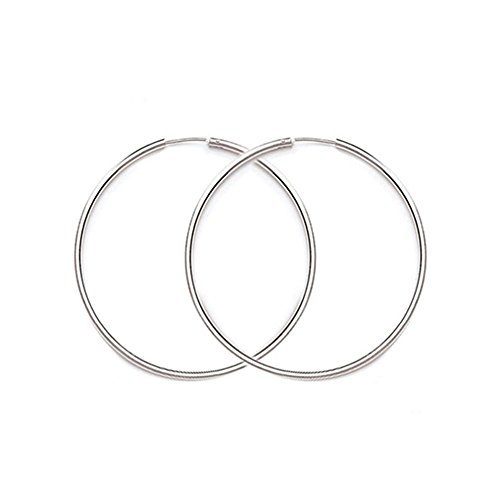 These may look like ordinary endless hoop earrings, but their tiny wire build holds a convenient little secret: they're actually hinged. You just pull the post up and away from the hoop, insert it in your ear easily, and then slip the post into the tube in the back of your ear. It's what everyone wants yet they are so hard to find! This hinged hoop combines the look of a traditional endless hoop with the easy-to-wear convenience of a hinged design. If you like a bold look, these large sized hoops, measuring at 2 inches with a 2mm wide tube are perfect.This item is made from Sterling Silver. All of our Sterling Silver products are nickel-free (a consideration for people with metal allergies). Every hoop comes with an authenticated sterling silver stamp.