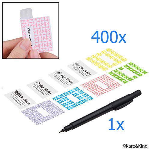 Labels for Lip Balm Tubes / Value Pack of 400 Stickers (or Other Purposes) - 200 Writable Stickers and 200 Printed Stickers - Self Adhesive Easy Peel - Fineliner Pen Included for Label Writing