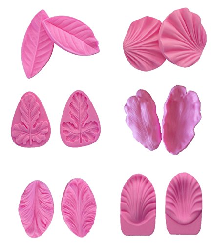 (Set of 6)Petal Veiner Leaf Cake Fondant Mold, Various Flowers Pattern Gumpaste Embossing Mold Cake Decorating Tools for Sugarcraft,Cupcake Topper, Polymer Clay
