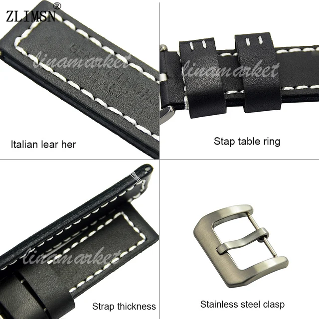 [해외]ZLIMSN 두꺼운 시계 벨트 정품 가죽 시계 줄 20 22 24 미리메터 밴드 실버 버클 액세서리 시계 Relojes 아저씨 TG116