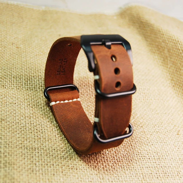 새로운 교체 가민 훼 3 시계 밴드 스트랩 미친 말 가죽 나토