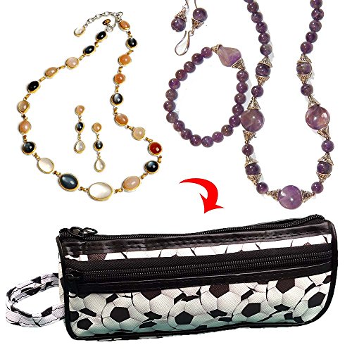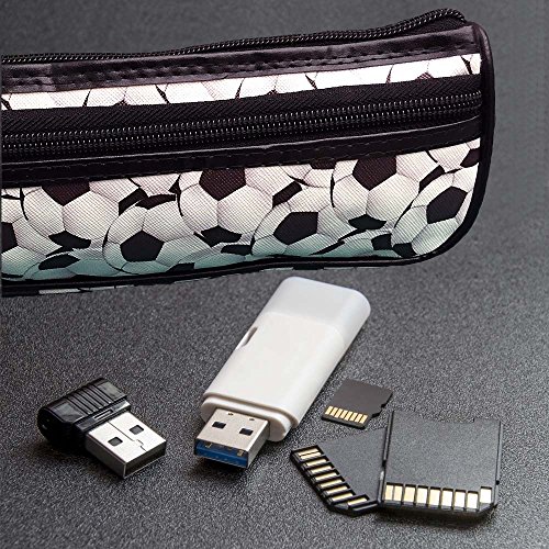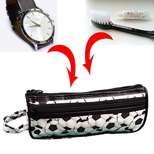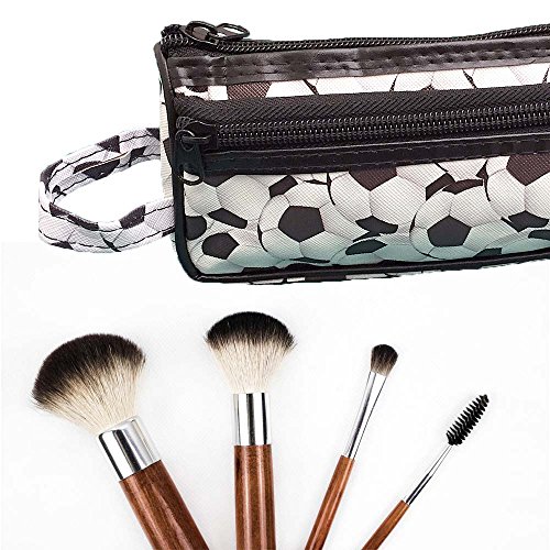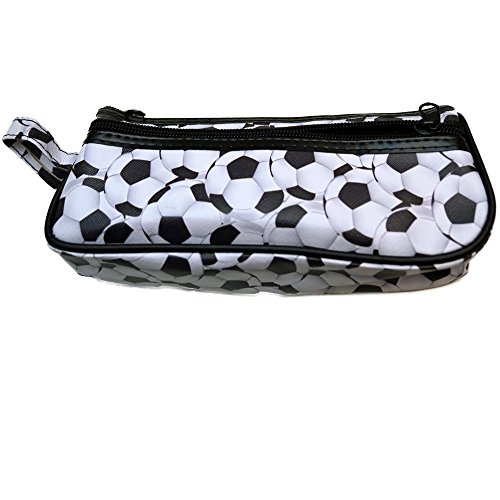 - SMALL SOCCER BALL PATTERN TOILETRY TRAVEL CASE: Multiple Use Travel Zip Case in a thin, picture photo rectangular size designed for arts and craft supplies (pencils, paintbrush, seamstress sewing scissors, embroidery thread), cosmetics, thin toiletry items, jewelry, or electronic accessories.