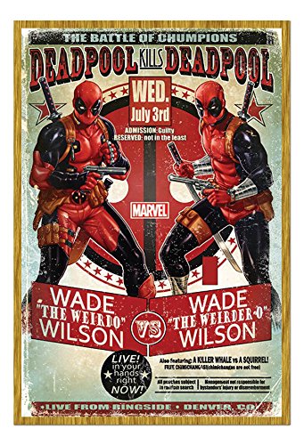 -. Title : Deadpool Wade The Weirdo Wilson Vs Poster Magnetic Notice Board Oak Framed - 96.5 x 66 cms (Approx 38 x 26 inches)