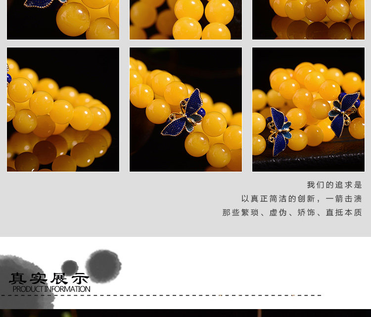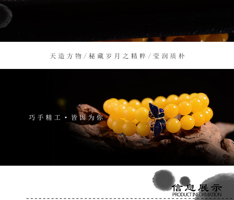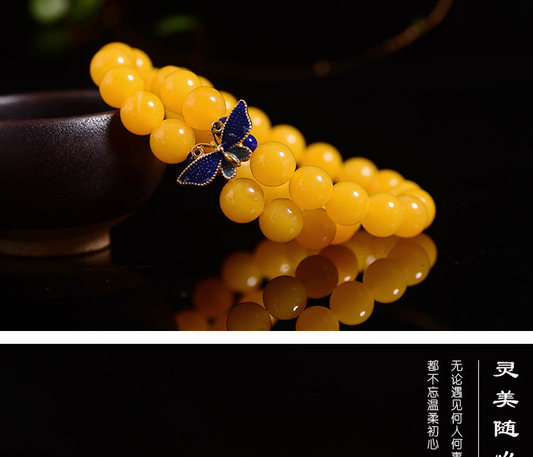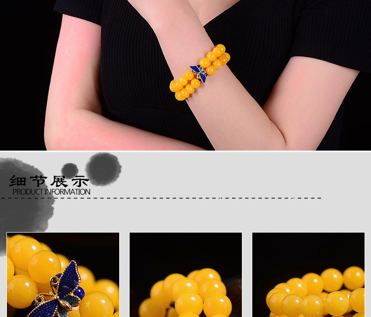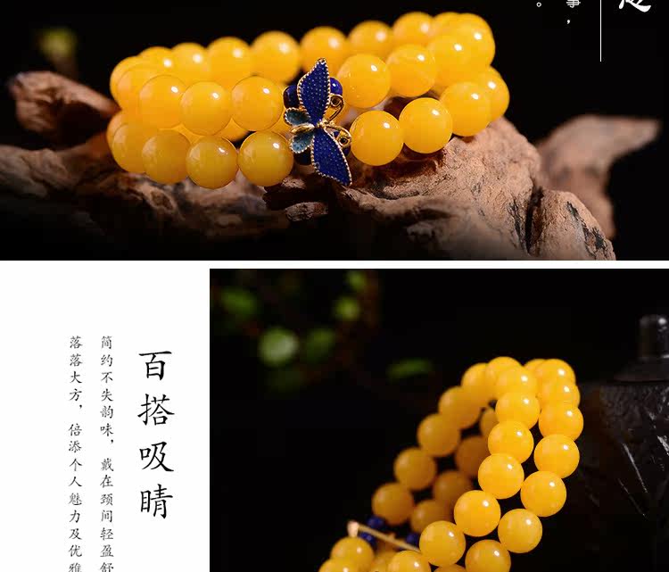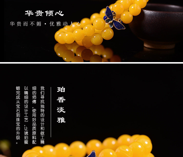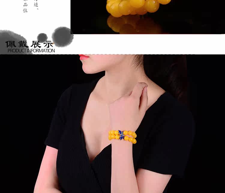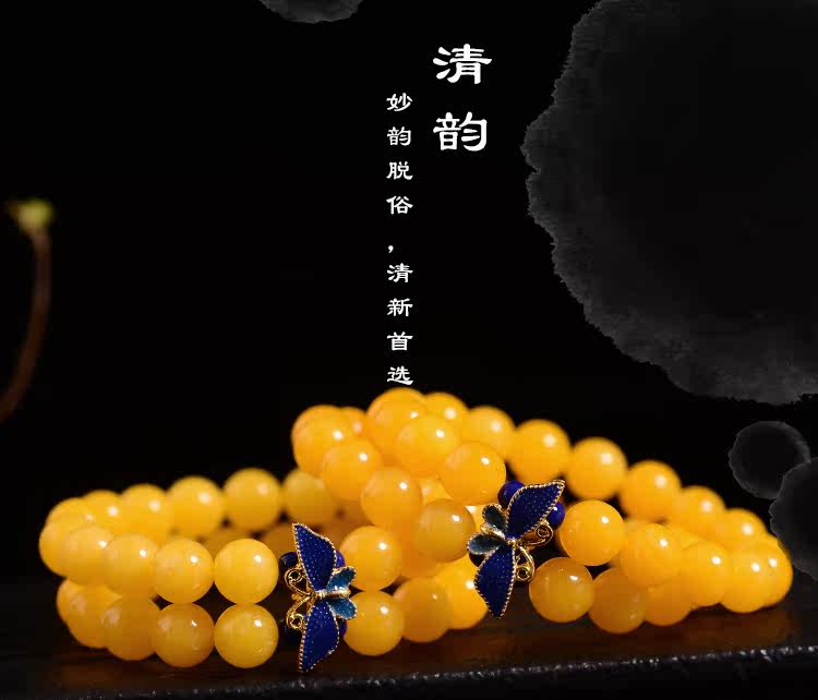 新款景泰蓝琥珀手链蜜蜡手串鸡油黄多圈鸡油黄蜜蜡手串女款