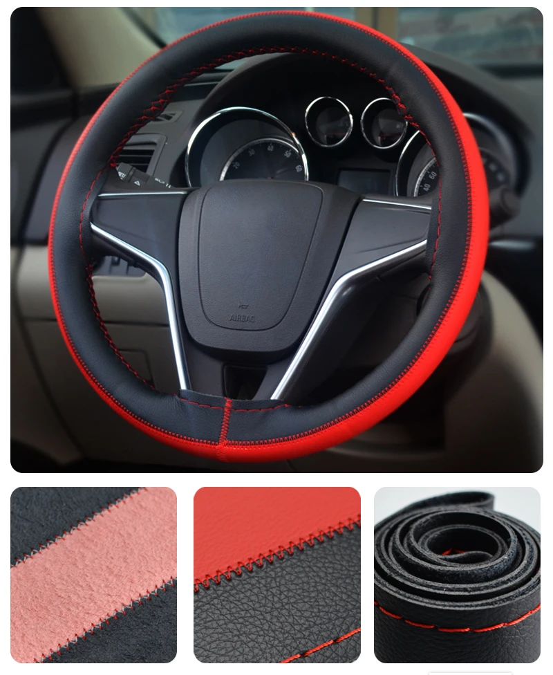 Car Styling:Car Steering Wheel Cover Leather Micro Fiber 38cm DIY Steering-wheel
