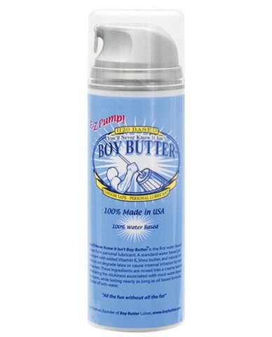 -. Binding : Health and Beauty -. Brand : Boy Butter -. Feature : Plastic pump bottle holds 5 oz. of lube. -. Label : Boy Butter -. Manufacturer : Boy Butter -. ProductGroup : Health and Beauty -. ProductTypeName : HEALTH_PERSONAL_CARE -. Publisher : Boy Butter -. Studio : Boy Butter -. Title : Boy Butter Personal Lubricant - E-Z Pump - 5 oz.