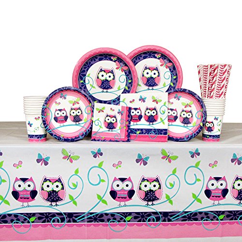 -. Title : Owl Pal Party Supplies Pack for 16 Guests: Straws, Plates, Napkins, Cups, and Table Cover