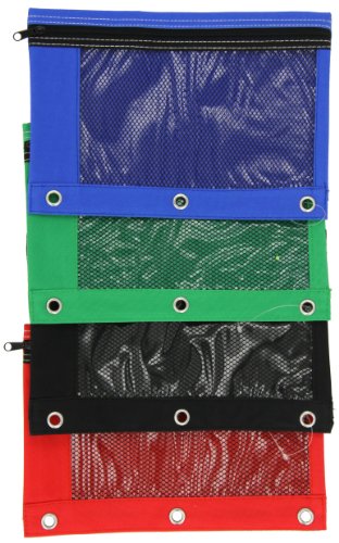 - Title : Bazic 3-Ring Pencil Pouch with Mesh Window, 24 Assorted colors (Case of 24)