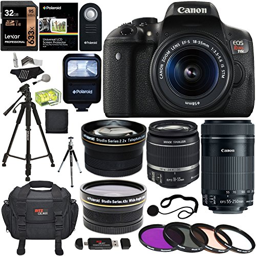 Canon EOS Rebel T6i Digital SLR with EF-S 18-55mm IS STM Lens & Canon EF-S 55-250mm F4-5.6 IS STM Lens Premium Ritz Camera Bundle Including: