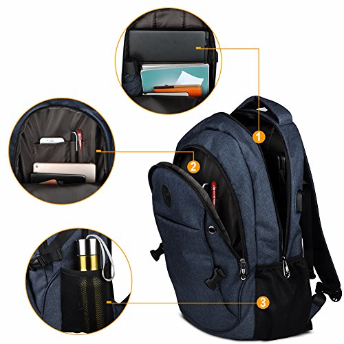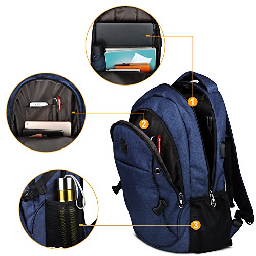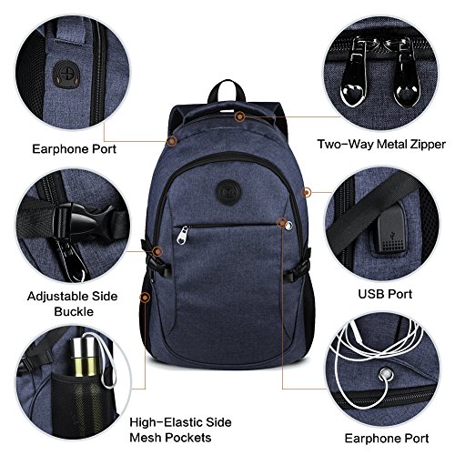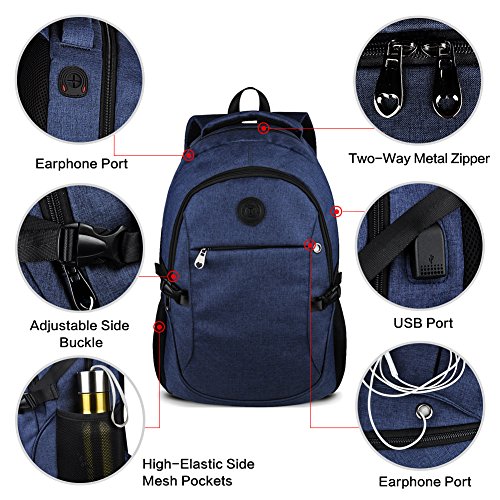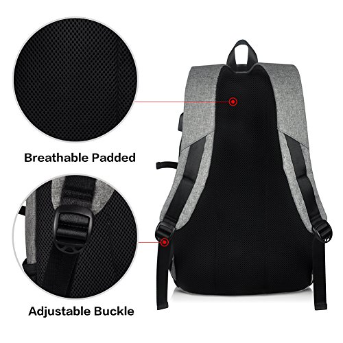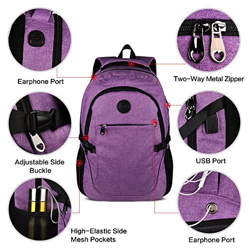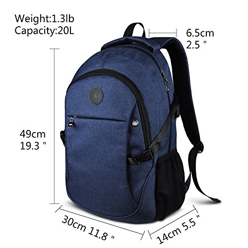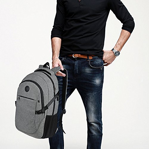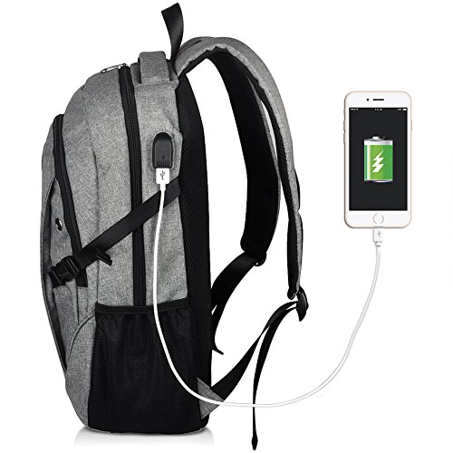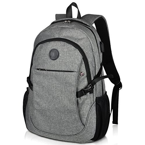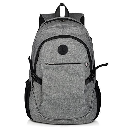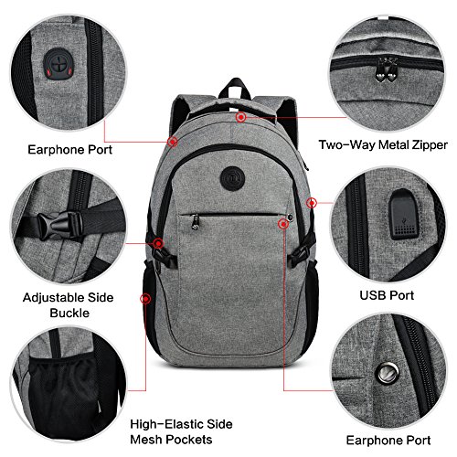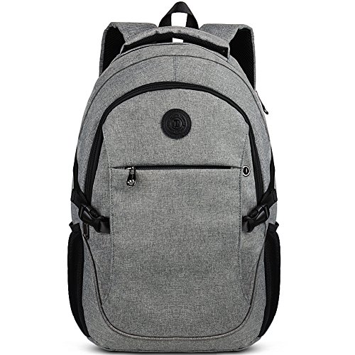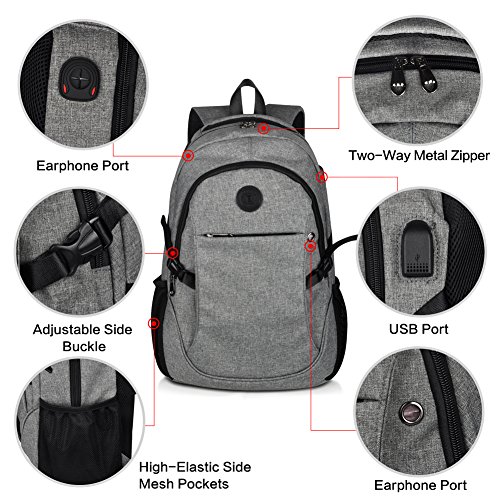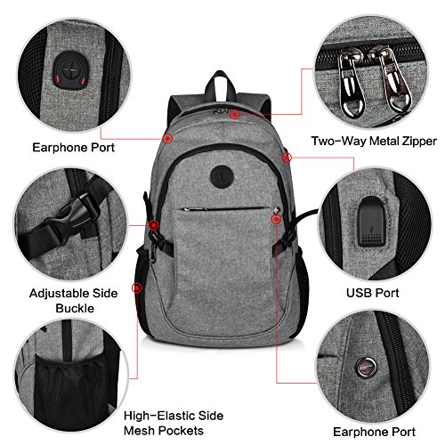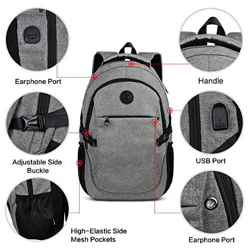 Binding : Personal Computers Product Description Laptop Backpack with USB Charging Headphone Port,15.6 inch Water Resistant Nylon Tavel Shool Backpacks Colors: Light grey, darkgrey. External dimension: 19.3"H x 11.8 "L x 5.5"W. Weight: 1.3lbs/0.59 kg. Package included: 1x Laptop backpack 1 X built-in USB charging cable Features: Made of durable nylon fabric, strong bottom, wide and thick strap with breathable pads. Large capacity school backpacks, can hold your laptop, clothes, books, passport, wallet and more. Multiple separated pockets, easy to find the items you want.Three small inner pockets to put cards, pens, two side mesh pockets can hold bottles. Conveniently for you to charge the electronic device with the USB charging port and listen to music with the earphone holes. Whether you are travelling, shopping, school and other activities in daily life, this laptop backpack is your good companion. 0