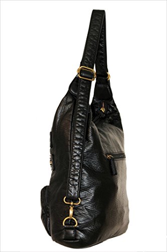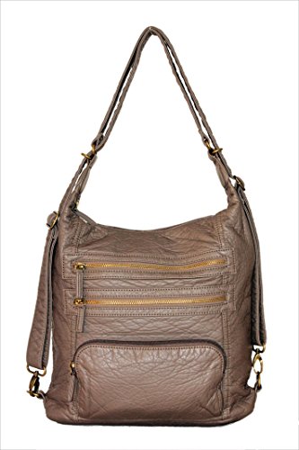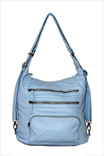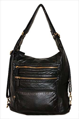 -. Brand : Ampere Creations -. Department : womens -. Feature : Made from high quality vegan leather this animal-friendly purse is super soft to the touch / Zipper closure helps keep your things safe. Measures approximately 13"W x 11"H x 5"D- great for day trips and for everyday use / Plenty of pockets- the front has 3 zipper pockets and the back has a zipper pocket too / Roomy interior has 3 pockets and the straps are adjustable and convertible for your carrying comfort / With just a few clicks, you can transform your purse into a shoulder bag, sling bag, cross body bag and back to backpack again -. ProductGroup : Shoes -. ProductTypeName : HANDBAG -. Size : One Size -. Title : Convertible Purse to Backpack Soft Vegan Leather Handbag Lots of Pockets