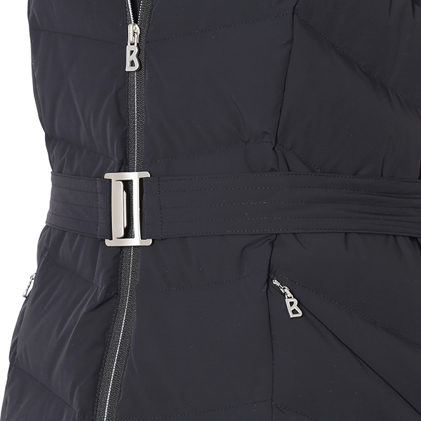 슬림한 핏의 라인과 허리 벨트가 여성스러운 포인트.