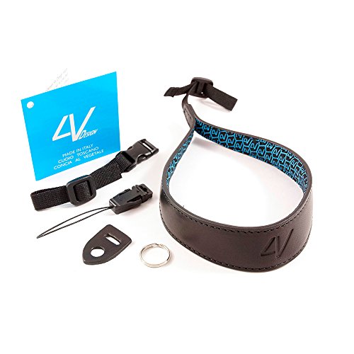 4V Design Ergo Large Handmade Leather Camera Wrist Strap w/ Universal Fit Kit, Black/Black (1LS01BVV0909)