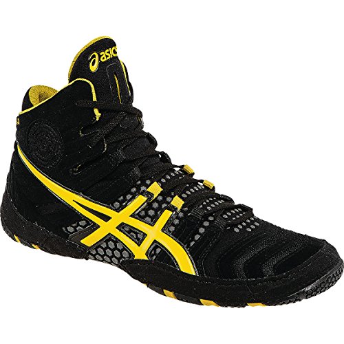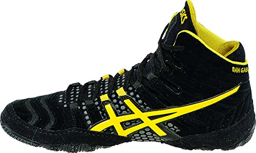 Studio : ASICS America Corporation Publisher : ASICS America Corporation Binding : Apparel Product Description Men's ASICS® Dan Gable Ultimate® 4 :: The latest update to the Dan Gable franchise, the New Dan Gable Ultimate® 4 features a newly designed upper construction with a conforming Compression-Fit Bootie System surrounded by thin polyurethane support pods for increased flexibly and an exceptional fit. The tongue features a less bulky version of our Integrated Lace Garage which meets regulations for tournament competition. The new outsole design offers extreme flexibility with wrestling-specific traction zones for elite performance on collegiate mat surfaces. Lighter, more flexible and better fitting. Dan Gable Ultimate® 4, the legend continues. 0