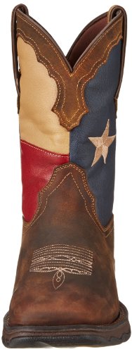 Product DescriptionDurango sets this cowgirl boot apart with a 10" Texas flag design leather shaft. Rolled and tempered steel shanks. 1 1 /4" rocker heel. Double stitched welt. Easy-on pull straps. Modern wide square toe profile. Imported.0