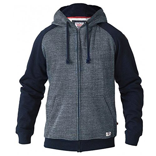 D555 Duke Kingsize Big Mens Cristiano Raglan Zip Hoodie Blue/Navy 2XL-6XL RRP 42.00