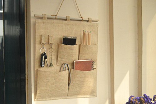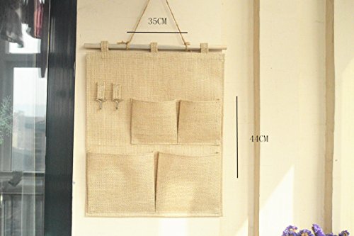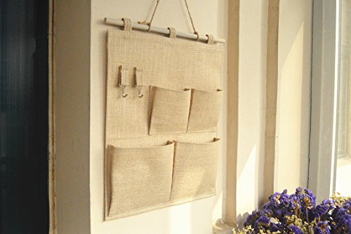 Over the Door Magazine Storage Pockets, Wall Door Closet Hanging Storage bag organizer, (4 Pockets with Hook-Nature)