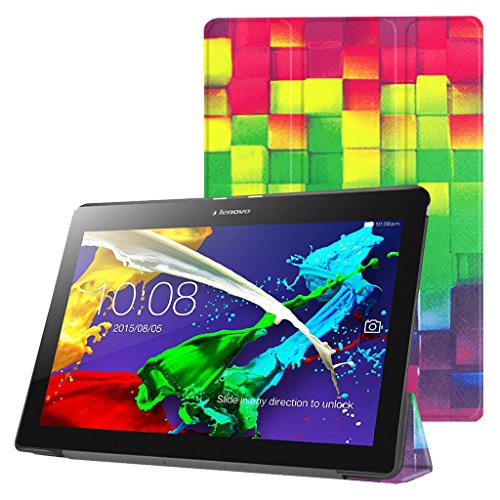 Lenovo TAB 2 A10-30F Slim Shell Case,Mama Mouth Ultra Slim Lightweight 3-folding PU Leather Standing Cover For 10.1" Lenovo TAB 2 A10-30F Android 5.1 Tablet,colourful block