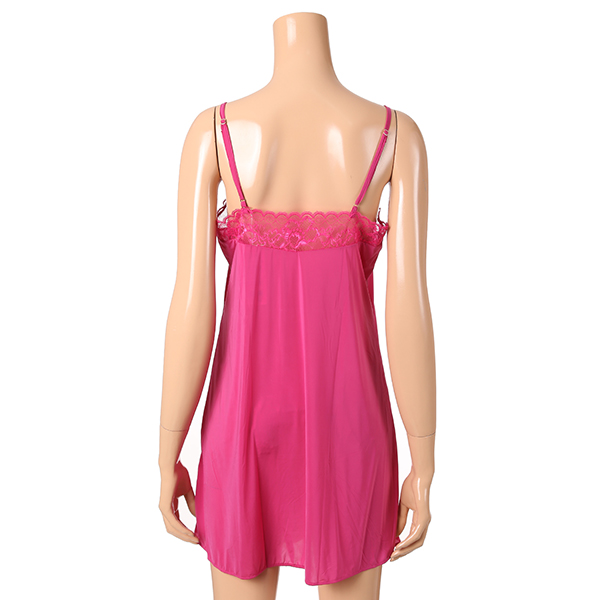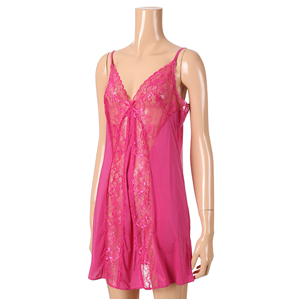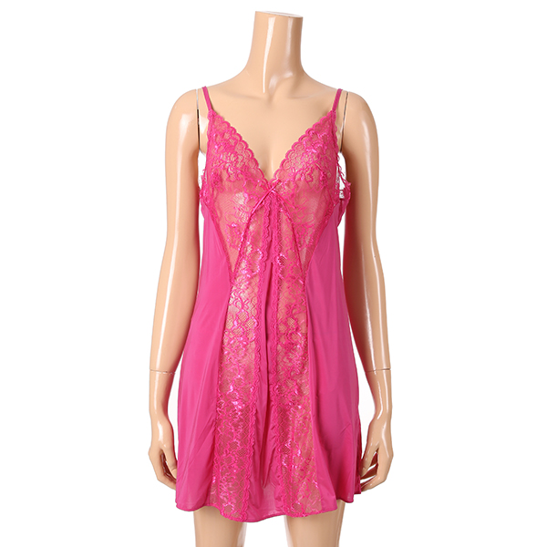 핑크 바탕에 가슴부터 세로로 시스루 레이스로 포인트를 주어