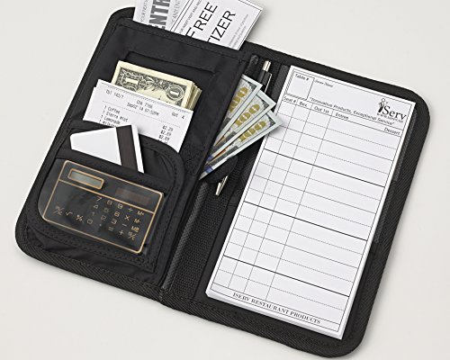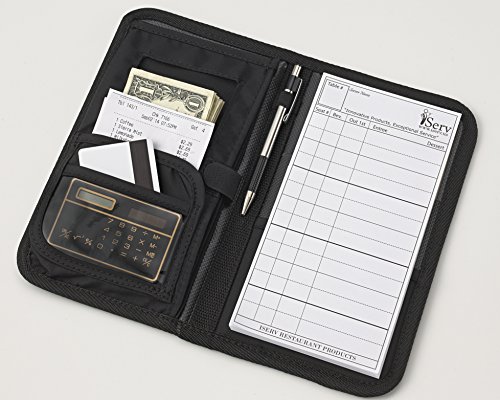 -. Binding : Office Product -. Brand : iServ -. Color : Black -. Feature : Professional Waiter Book / Organizer with innovative - EZ Banking System -Innovative 2 pocket banking system designed to keep your cash organized & secure- / Closed Credit Card/Cash Transactions pocket, Clear front pocket (Mini-calc.not included). / Expanded Spine with Elastic Pen holder & 2 additional pockets for all your misc. items. / Includes Free Order Pad. Simplified & stream-lined design created for professional servers. / *Made in USA* using the highest quality materials & craftsmanship guarenteed. -. Label : iServ Restaurant Products LLC -. Manufacturer : iServ Restaurant Products LLC -. MPN : iServ -. PackageQuantity : 1 -. PartNumber : iServ -. ProductGroup : Office Product -. ProductTypeName : OFFICE_PRODUCTS -. Publisher : iServ Restaurant Products LLC -. Studio : iServ Restaurant Products LLC -. Title : iServ Deluxe Waiter Book with Secure Money Pocket - Made in the USA - Waitstaff Organizer Server Wallet - Professional Restaurant Products