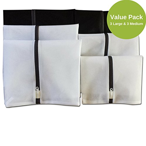 LANCON Reusable Mesh Laundry Bags, Set of 6 (3 Large and 3 Medium)