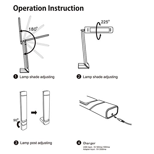 -. Feature : USB PORT SUPPORT - Compared with many others desk lamp using the traditional charger, our Premer PM-L615-W LED table lamp provide a more convenient USB Port. / WIRELESS & PORTABLE - Built in 1800mAh Rechargeable Lithium Battery could be worked as emergency light. Over 8 Full hours of light after just one charge. / Specifications - LED Lumens: 950; Light Wattage: 6W; Color temp: 5500K-6500K; Lamp Luminous Efficiency(lm/w): 80; Lifespan: >30000hrs; Weight: 2.7lbs; Input: 100-240V; CRI (Ra>): 85 / WALL LAMP ALSO - These is a hang hole on the bottom, the lamp could be also applied on the wall. / Satisfaction Guaranteed - Promise 12 months seller warranty - For All Premer Desk Lamp