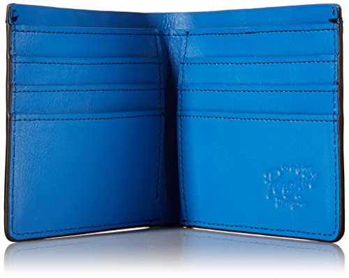 Bi-fold wallet with rounded bottom corners and contrasting interior pockets