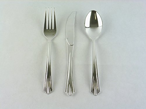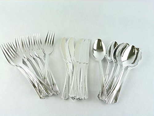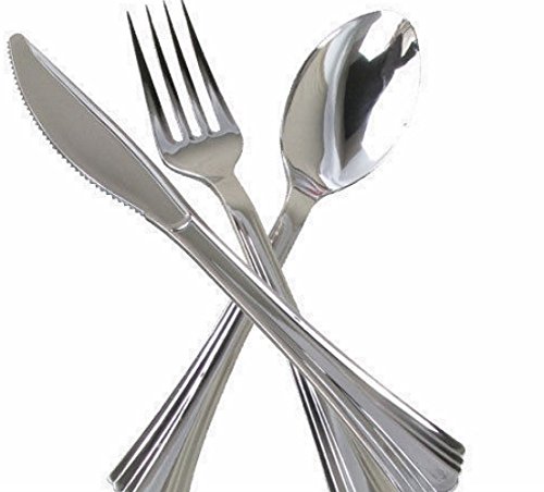 144-Piece Silver Plastic Cutlery Set