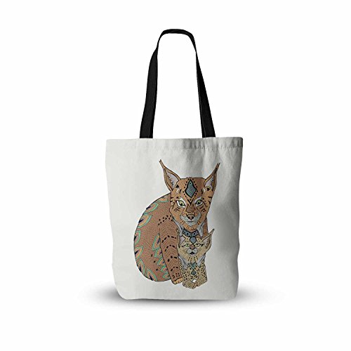 KESS InHouse "Pom Graphic Design Mama And Baby Lynx Brown Teal Vector Animals Everything" Tote Bag, 18" x 18", Multicolor