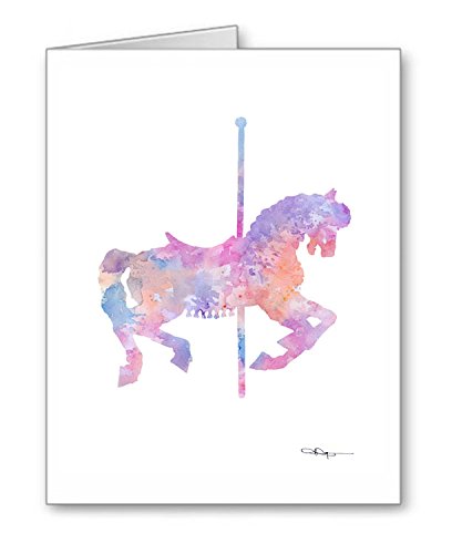 -. Feature : Carousel Horse artwork by watercolor artist DJ Rogers. / Note card size is 4.25 x 5.5 inches / Matching white envelopes included. / Note cards are blank inside for your personal message. / Suitable for framing.